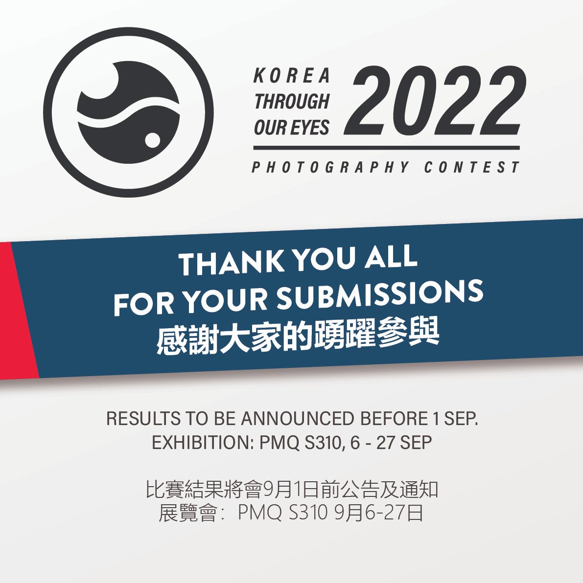 Korea through Our Eyes 2022 | 攝影比賽 Photography Contest As of 2 Aug 00:00, the submission period for <korea through="" our="" eyes="" 2022=""> Photography Contest has officially ended. The results will be announced and the winners will be notified before 1 Sep, and the Exhibition of selected entries will be held from 6 Sep to 27 Sep in S310, PMQ. |