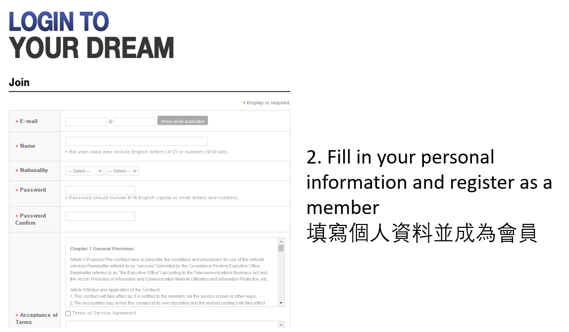 1. 到http://coverdance.seoul.co.kr/login註冊成為會員