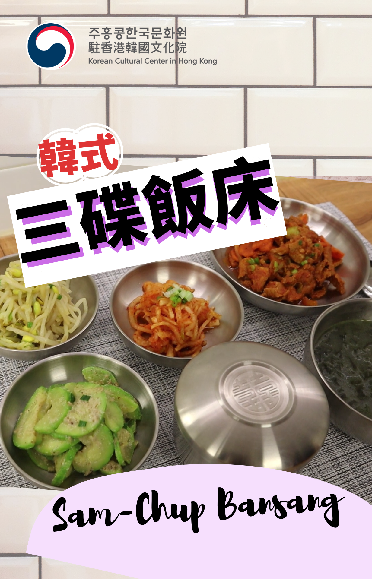 'Bansang' refers to the Korean traditional dining table, and 'Chup' is the number of side dishes. Usually, Korean traditional 'bansang' consists of a main dish, some side dishes, rice and soup. Today's tutorial is on 'Sam-Chup Ban-Sang', a typical k-style meal with three side dishes!