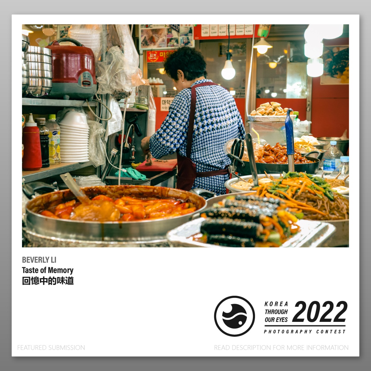 Korea through Our Eyes 2022 | 攝影比賽 Photography Contest 駐香港韓國文化院現正舉辦「Korea through Our Eyes 2022攝影比賽」。只要有一張以韓國為主題的相片(可以是在韓國拍的或者是以韓國為主題的),你也可以參加比賽~以上的照片是由Beverly Li提供,看到之後,相信大家也很想念韓國的街頭小食吧! |